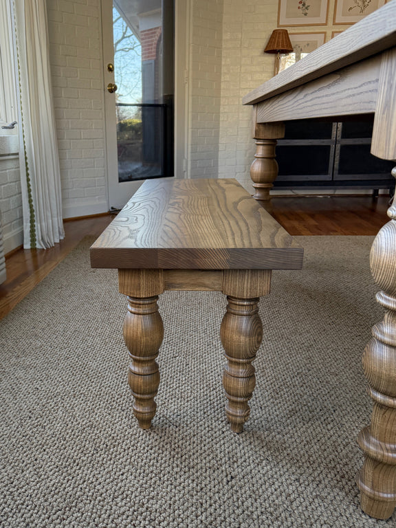 Note: All benches are made with Alder, Red Oak, Ash, Maple, White Oak, or Walnut with no two pieces being the same. There will be knots, distressed points, and uniqueness in all pieces. You're going to love it.