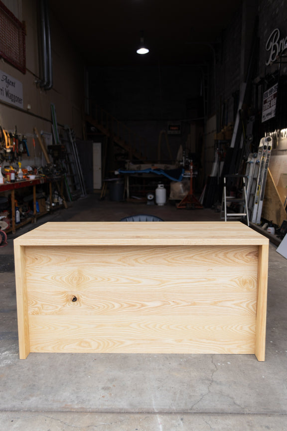 - Top and sides built with 1.5" thick solid wood. Front kick panel made with .75" thick solid wood.